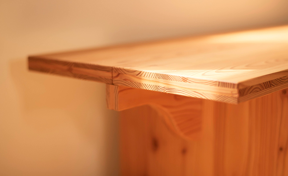 木目が織りなす豊かな顔つきはもちろん、職人の手による細部に渡る美しさも、ライナウッドの大きな特徴です。何かをつくりたくなる。何かに使いたくなる。その素直な想いにすっと触れるような美しさを、私たちは今日も目指しています。